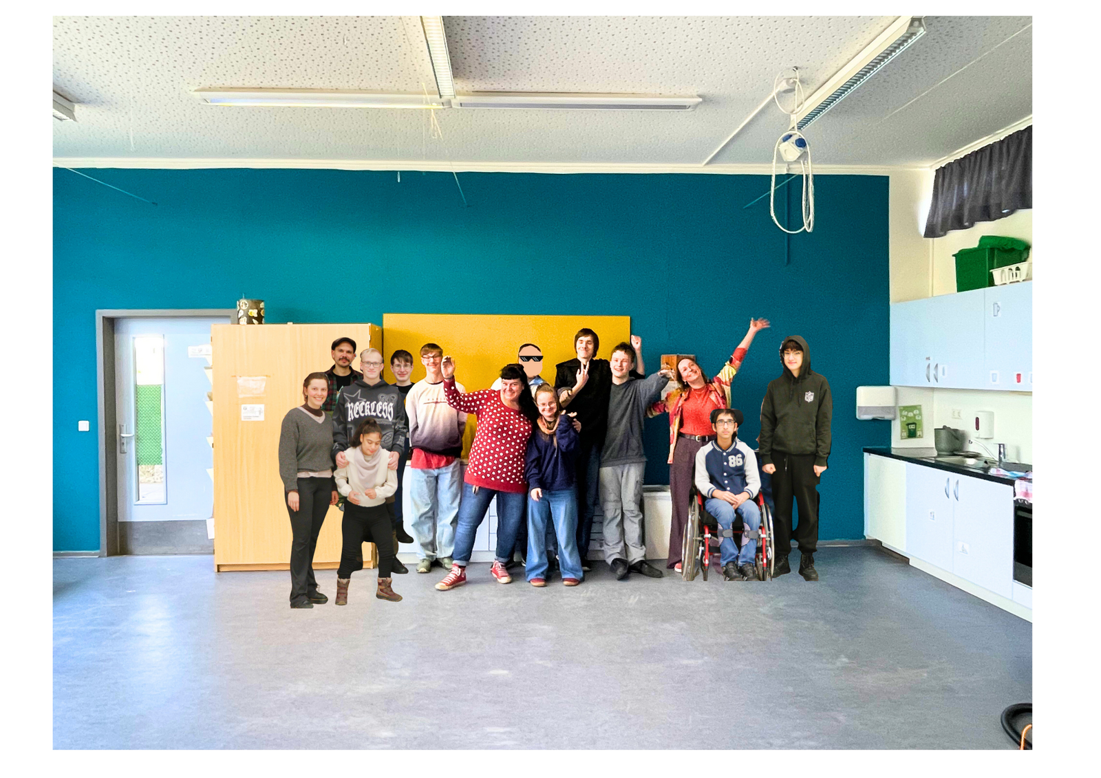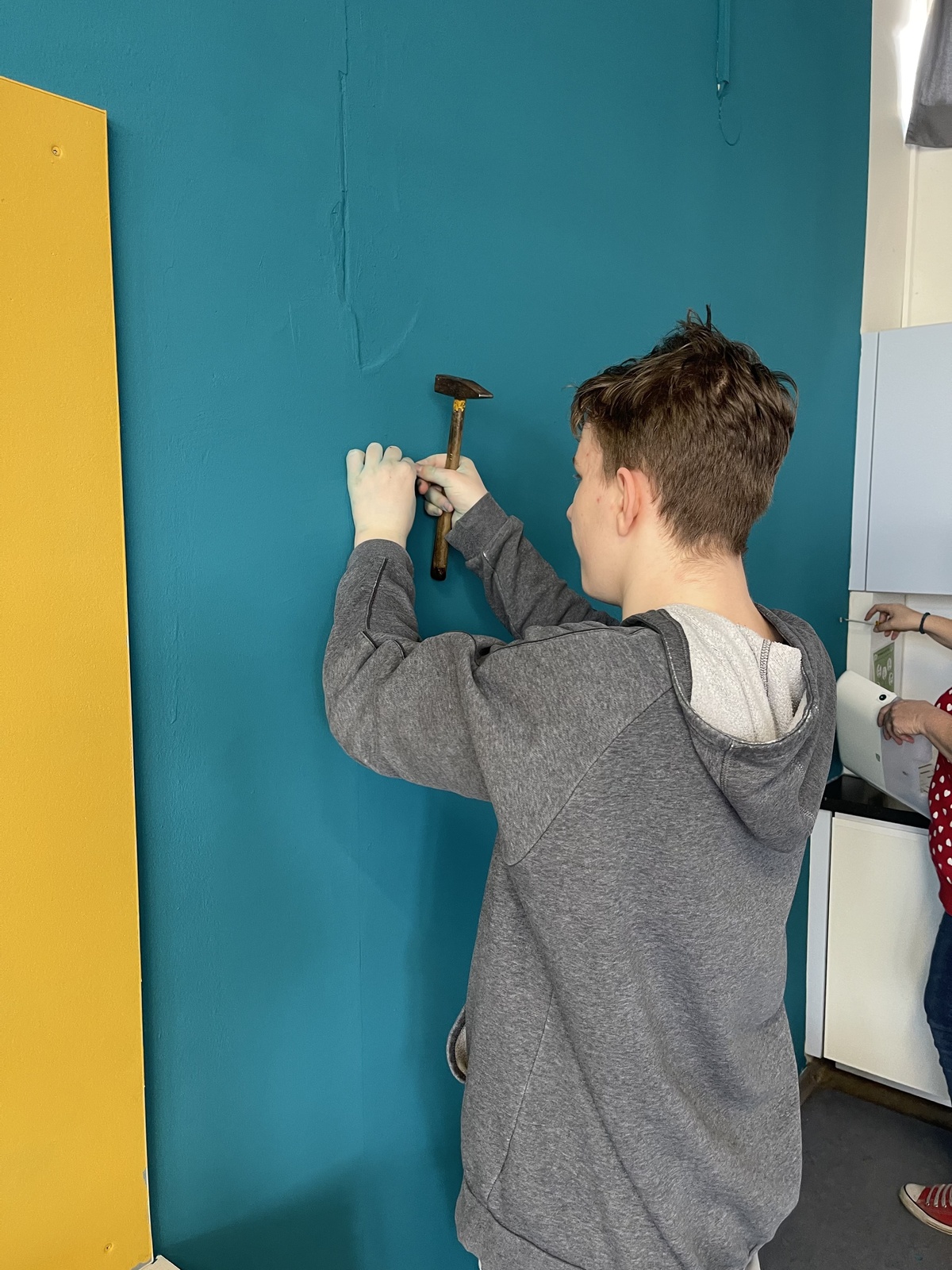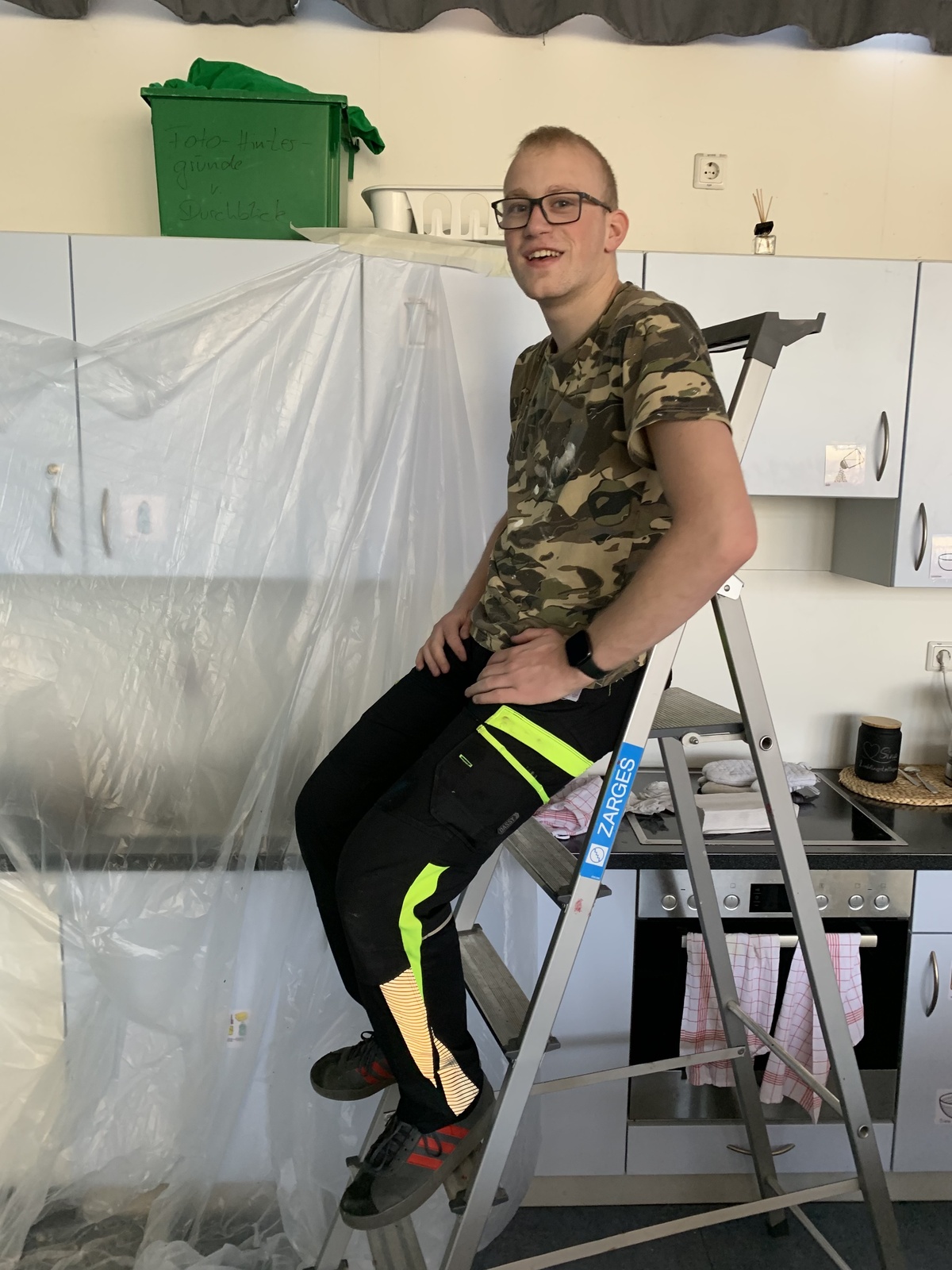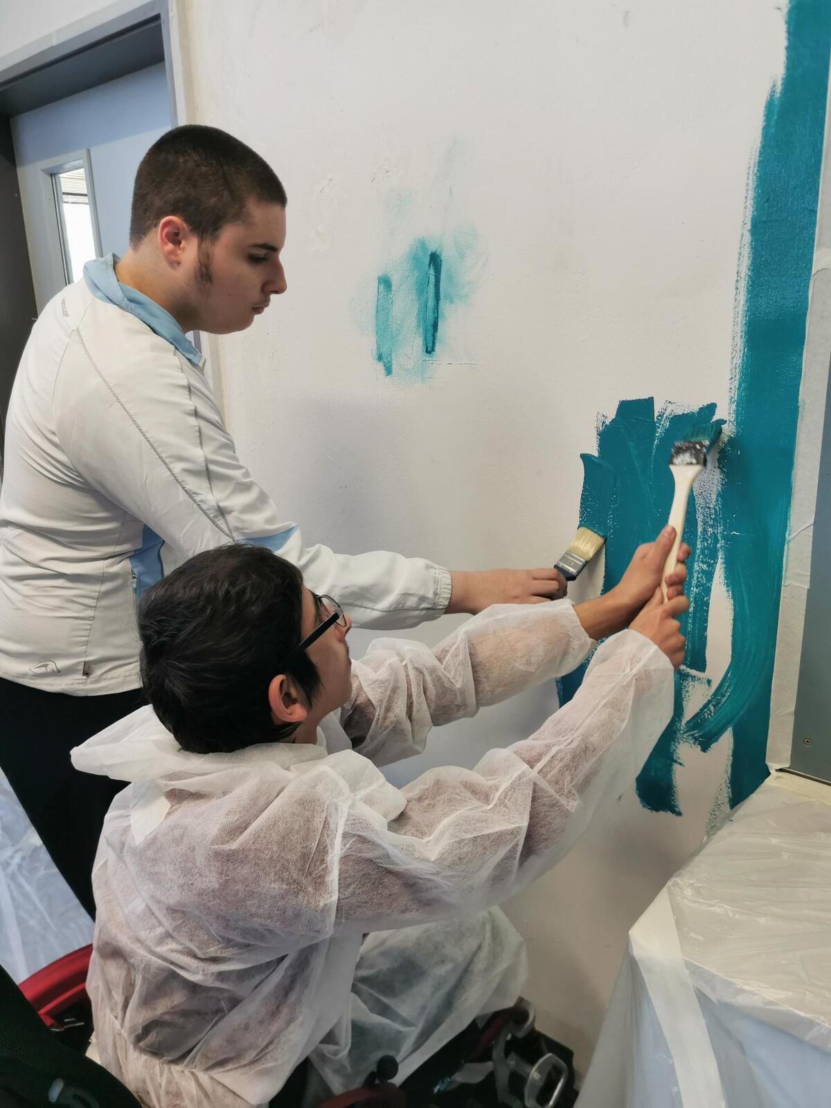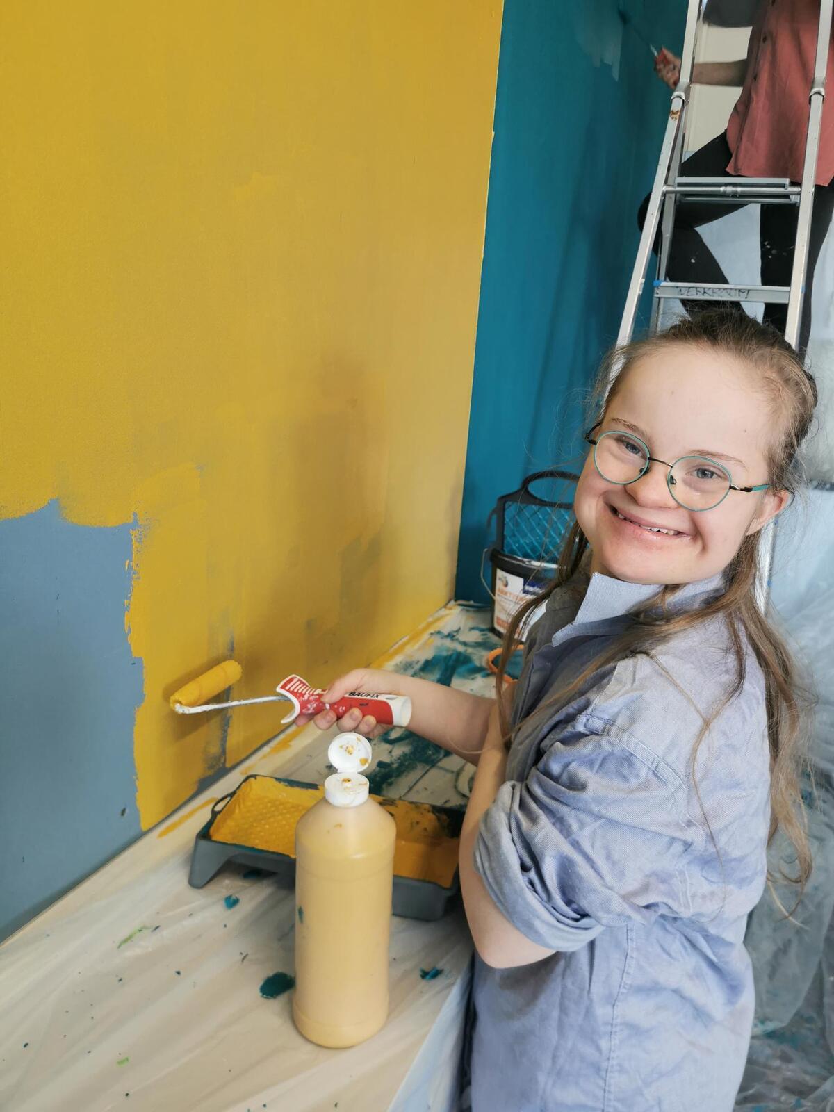 Wir haben gemeinsam Farben ausgesucht und überlegt, was wir alles brauchen. Im Baummarkt haben wir alles bekommen, was wir benötigten, wie z. B. Farbe, Kreppband, Spachtelmasse. Pinsel, Rollen. Abdeckplane und Maleranzüge haben die Eltern mitgegeben. An dieser Stelle nochmal vielen Dank.