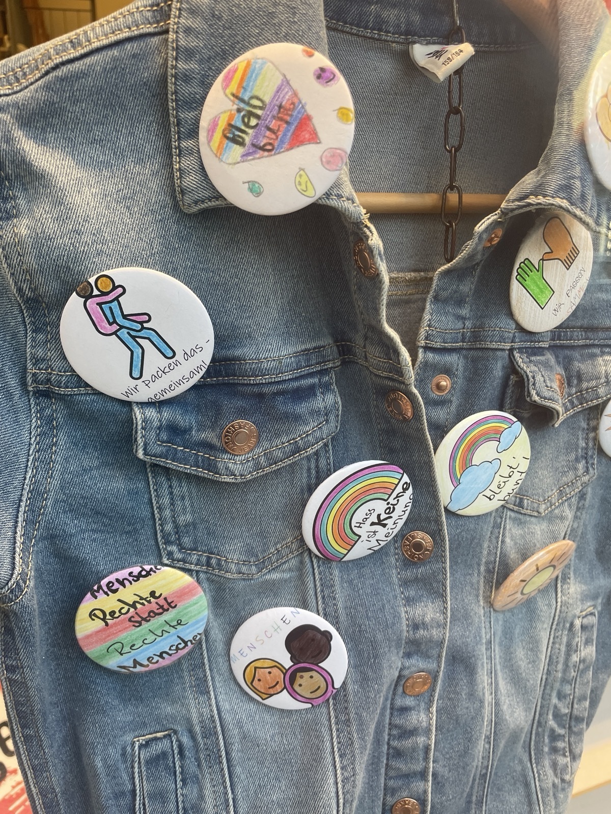 Hier sehen nun alle Besucher unsere schöne Wimpelkette und viele tolle Buttons für Vielfalt und gegen Ausgrenzung.Â