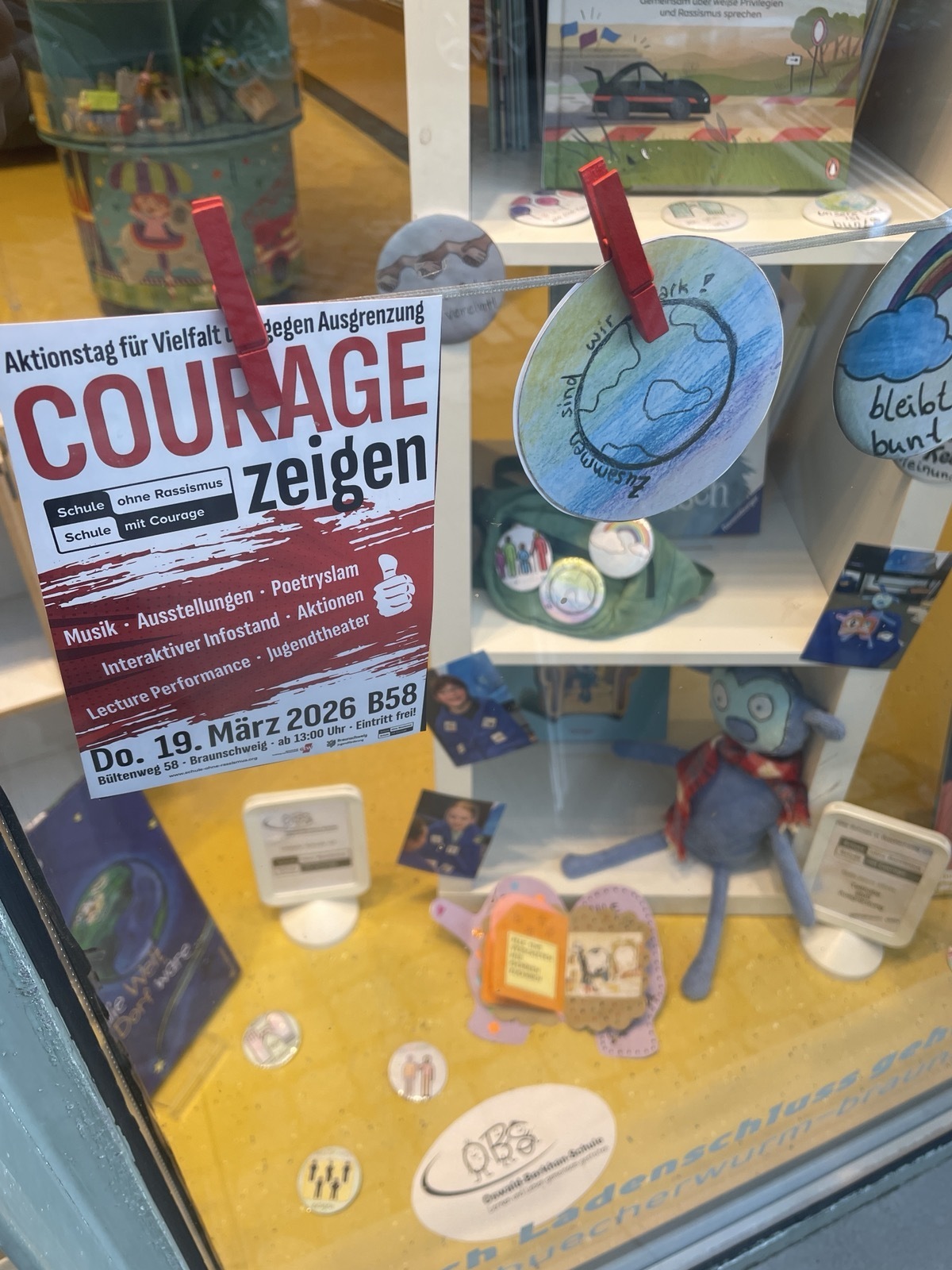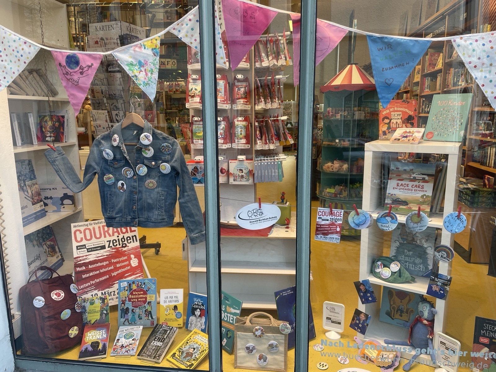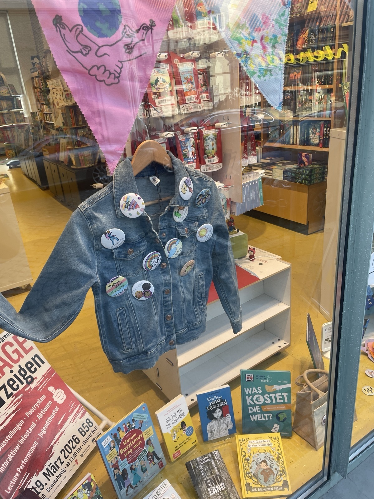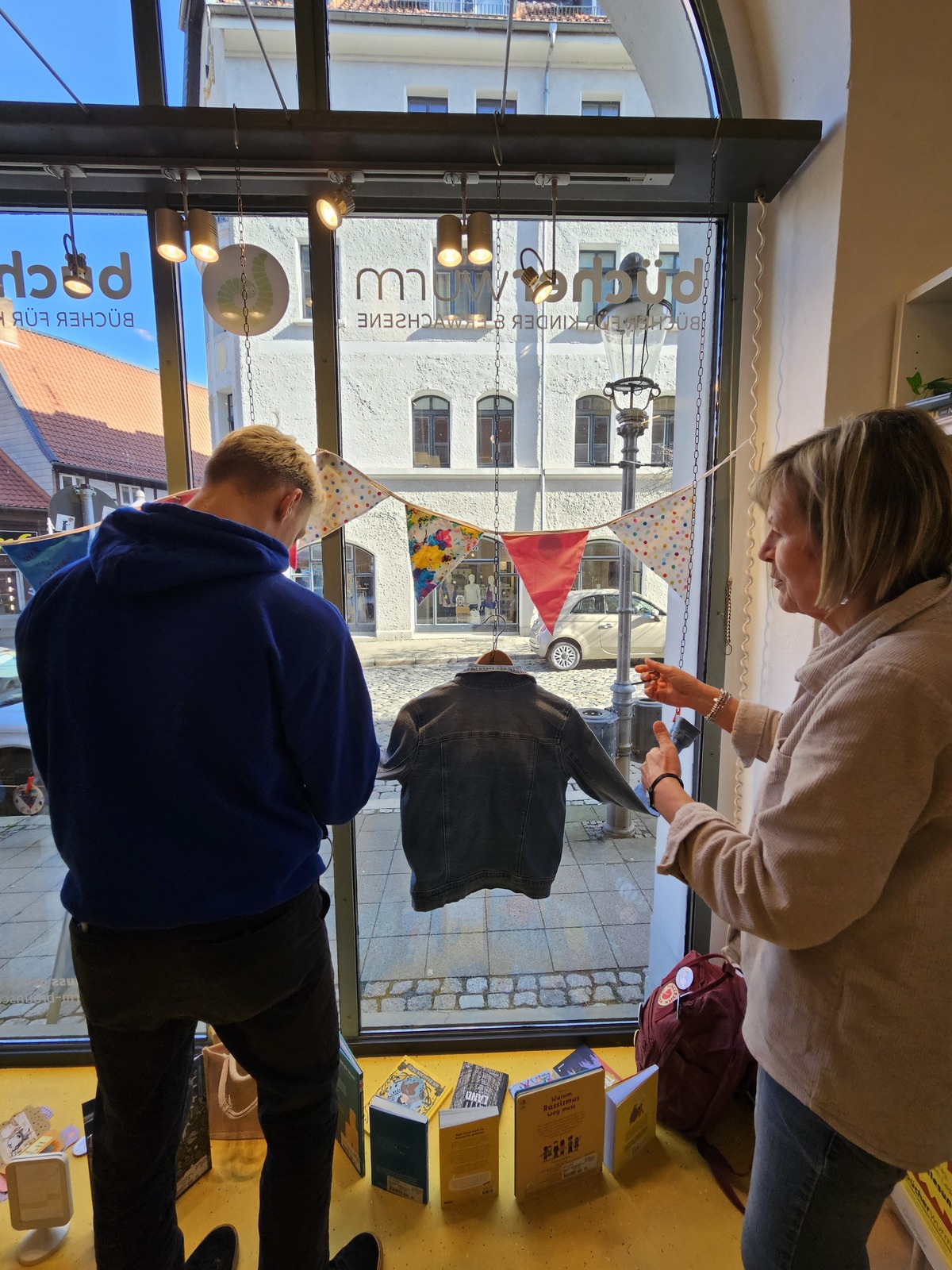 Wir haben am Donnerstag in dem Kinderbuch-Laden „Bücherwurm“ im Magni-Viertel ein ganzes Schaufenster dekoriert.