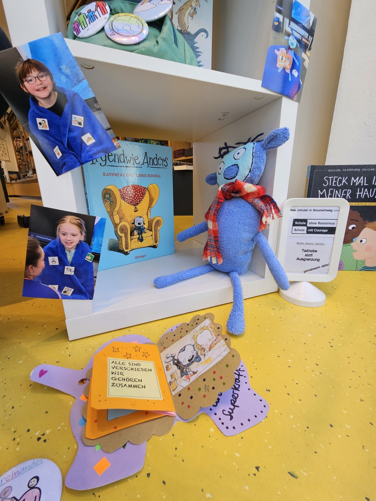 Auch einige Ergebnisse des Buch-Projektes „Irgendwie Anders“ der 4. Klassen haben wir dort ausgestellt.